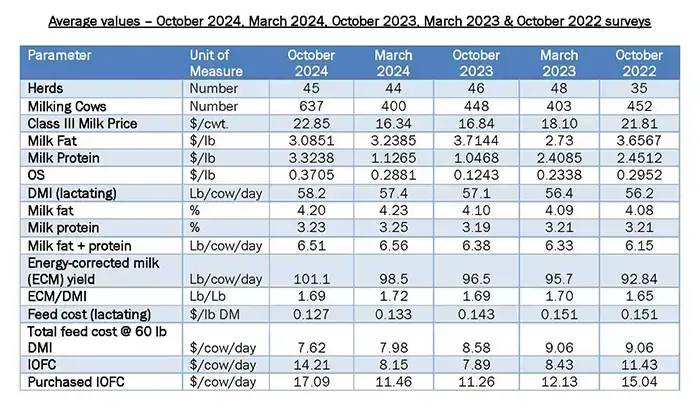 The survey in this geography has yielded some interesting results over the past three years. We observed an increase in average milk fat percentage from 4.08% in October 2022 to 4.20% in October 2024. Feed costs have decreased over this period from $0.151 to $0.128 per pound of dry matter.