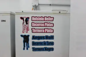 In the calf kitchen, Dean has created a specific protocol for feeding colostrum. A member of the Helt family feeds new calves about 85% of the time. When a family member or employee walks into the kitchen, different labels and instructions are set out so anyone can feed a newborn calf. Each label is in English and two dialects of Spanish, providing resources employees need during the day or night shift.