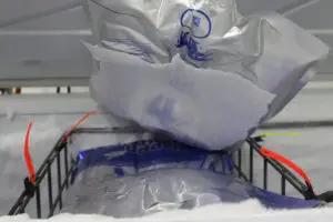 Fresh colostrum is pasteurized before it’s placed in the freezer. When a calf is born, the bag is taken from the freezer and rewarmed in the Matilda®. Before receiving its colostrum feeding, the calf is weighed. Each calf will get weighed again at weaning to keep track of weight gain.