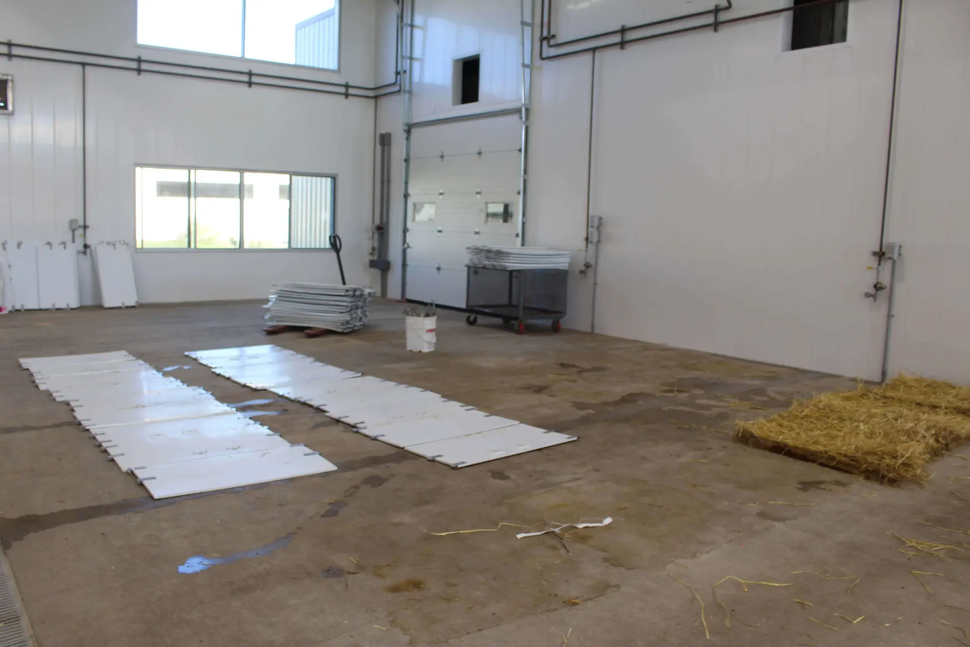 Newborns are immediately moved into warming pens. Each kid is fed 200 to 300 mL of colostrum replacer, followed by a 150-mL feeding 12 hours later. They also receive ear tags and vaccines in the newborn pens.