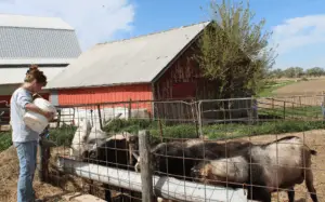 Kids are fed 24 ounces of milk replacer twice a day and consistently offered warm water. They are introduced to an 18% kid starter pellet at two weeks old. Preventing disease is one of Mary’s top priorities, so she pays close attention to kids during feeding. As a result, in 2025, the farm only lost two kids.